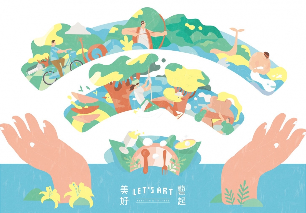 藝起美好的視覺意象以WIFI作為主角,象徵疫情期間的跨距離交會,裡頭乘載著正是花東豐富的文化元素,此意象更成為日後每次藝起美好線上聚會的合照POSE!